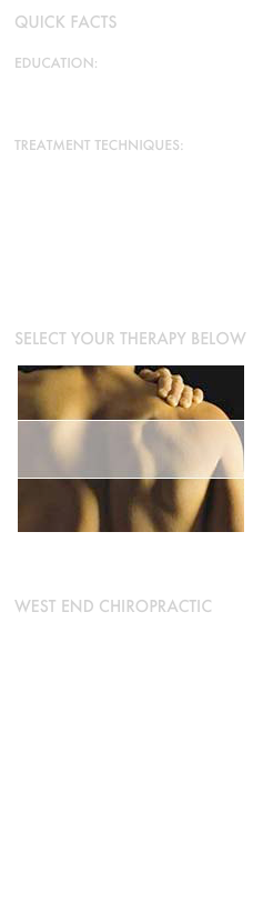 We specialize in an integrated approach to your health. West End Chiropractic Clinic opened its doors in 1998 and was taken over by Dr. Book a new client exam.
